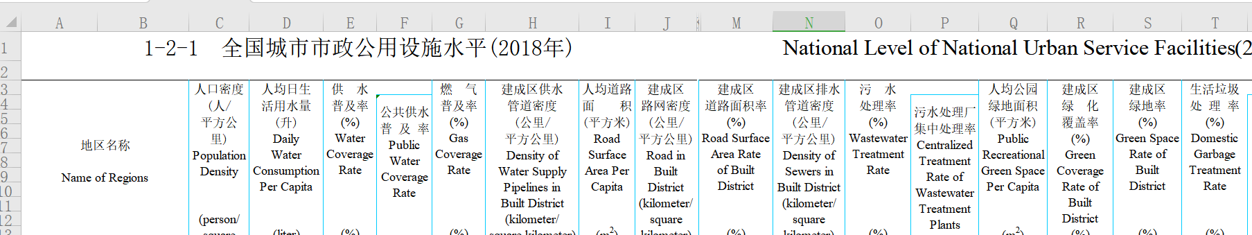中国城乡建设统计年鉴2007-2019 Excel格式