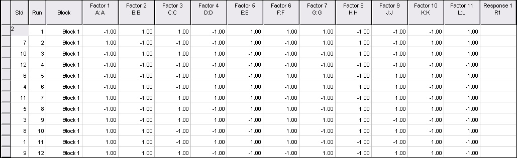 wsyxh 发表于 2011-3-31 11:52 PB设计12次的试验,理论上可以安排11个因子,但实际上需要保留3个以上的空白列估计试验误差。 你的试验安排 ...
