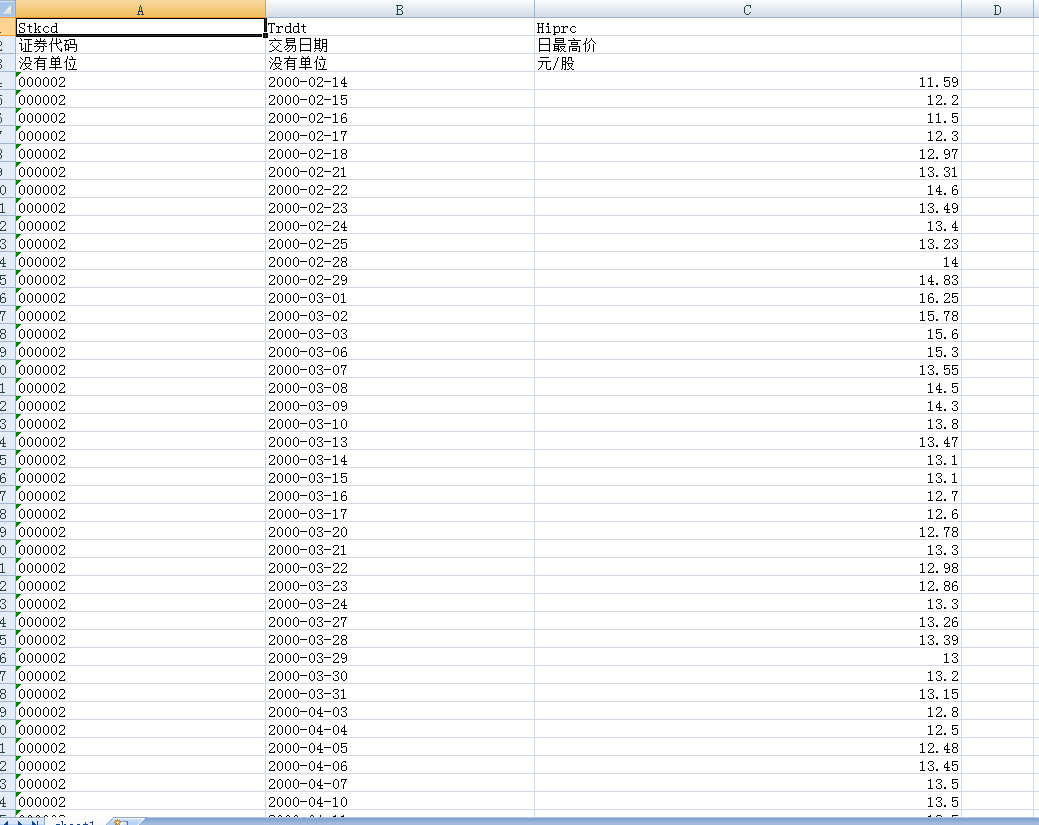 附件数据是个股的日最高股价,我想用stata筛选出个股每年的最高价,不知道命令如何实现,麻烦大伙帮帮忙