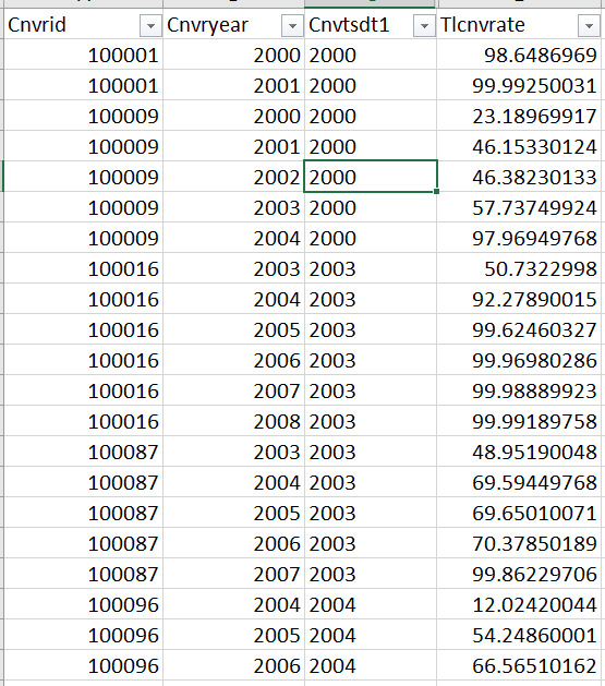 replace indicator=1 if Cnvryear==newyear & Tlcnvrate>=50