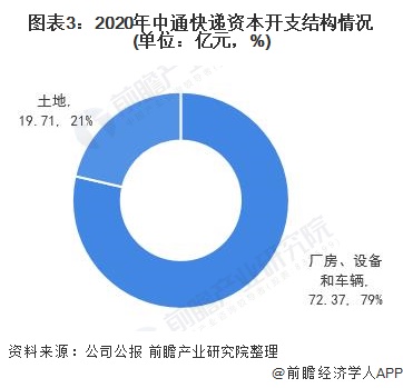 从中通的资本开支情况来看,2020年,中通快递的资本开支主要包括厂房、设备、车辆和土地四大部分,其中厂房、设备和车辆相关的投资总额达到72.37亿元,占比79%,土地投资为19.71亿元,占比21%。