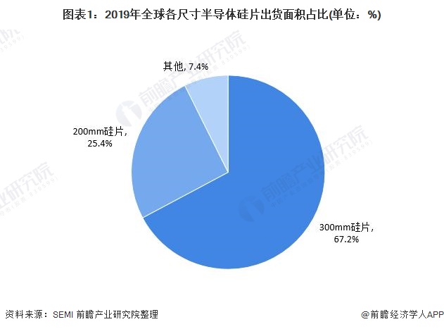 据SEMI数据,截至2019年,全球300mm的半导体硅片出货面积占全部半导体硅片出货面积的67.2%。