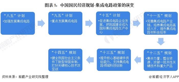 集成电路是我国科技发展的重要组成部分,是我国各行各业实现智能化、数字化的基础。根据我国国民经济“八五”计划至“十四五”规划,国家对集成电路行业的支持政策经历了从“加强发展”到“重点发展”再到“举国体制大力发展”的变化。