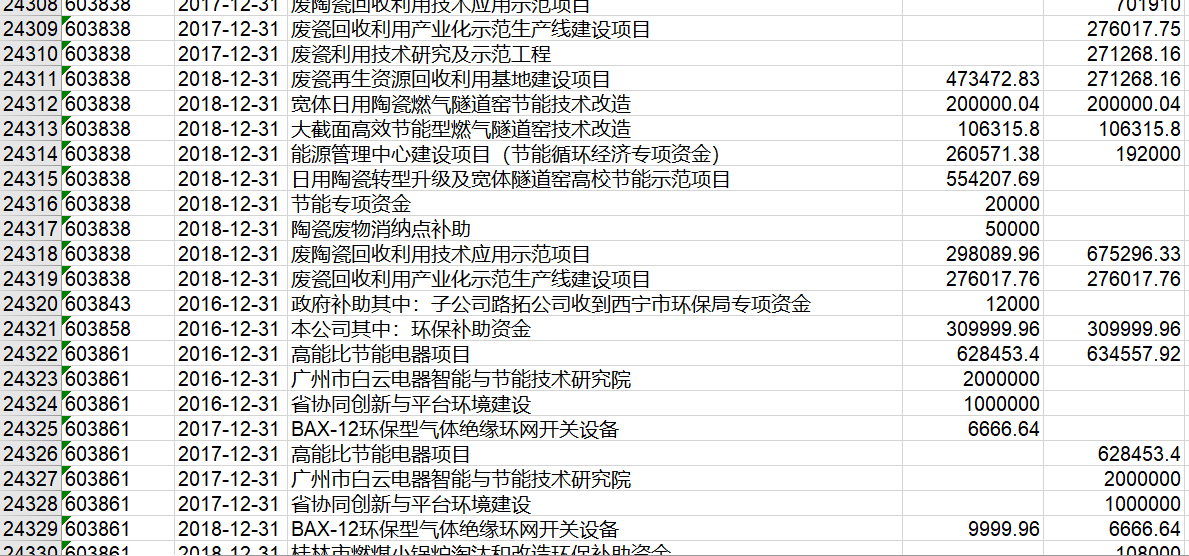 可持续发展、绿色……等" 对所有政府补助明细科目进行手工筛选。