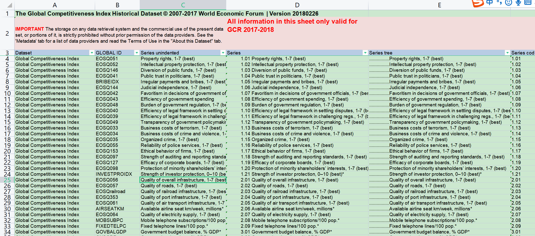 今天为论文努力了吗 发表于 2021-7-1 08:36 有的,2007-2017有Excel版的,其他年份的在全球竞争力报告PDF版中有