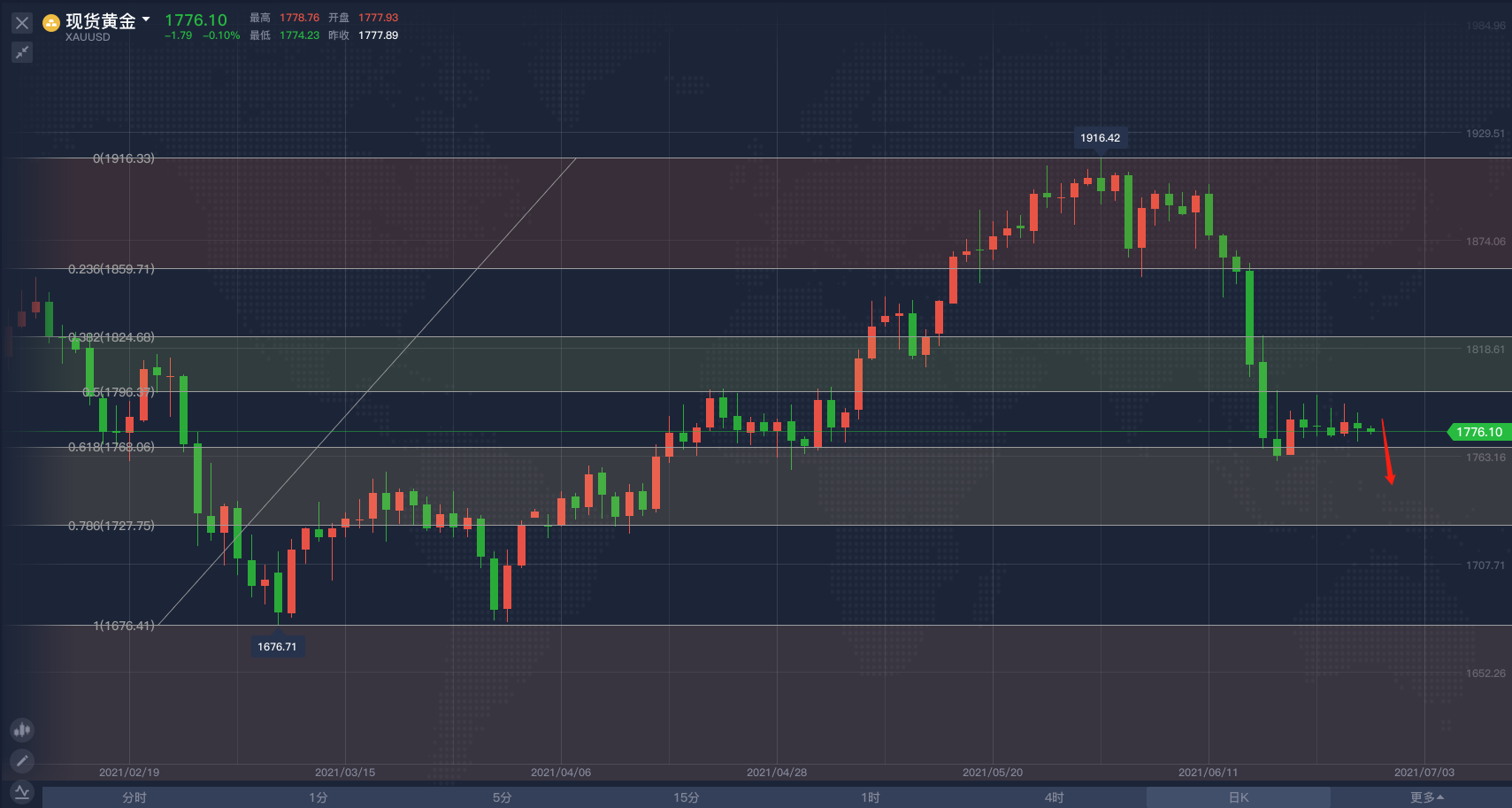 黄金日线连续十字星整理,今日盘面继续看区间运行,这种走势至少要到周四甚至在非农前都会是这种走势,而震荡的时间越长,后市破位后走延续的力度也就越大。方向上笔者仍然看跌,除非多头突破1796价位,后市才能确立多头反转,否则看跌不变,向下破位走出新低也只是时间问题。综合而言,整体看跌,短线看区间延续,操作上高空为主,短多为辅,压力1796,支撑1768。早盘回落1773-2短多,止损1768下方,目标看1780-85,而后反手做空即可,跌破持有。