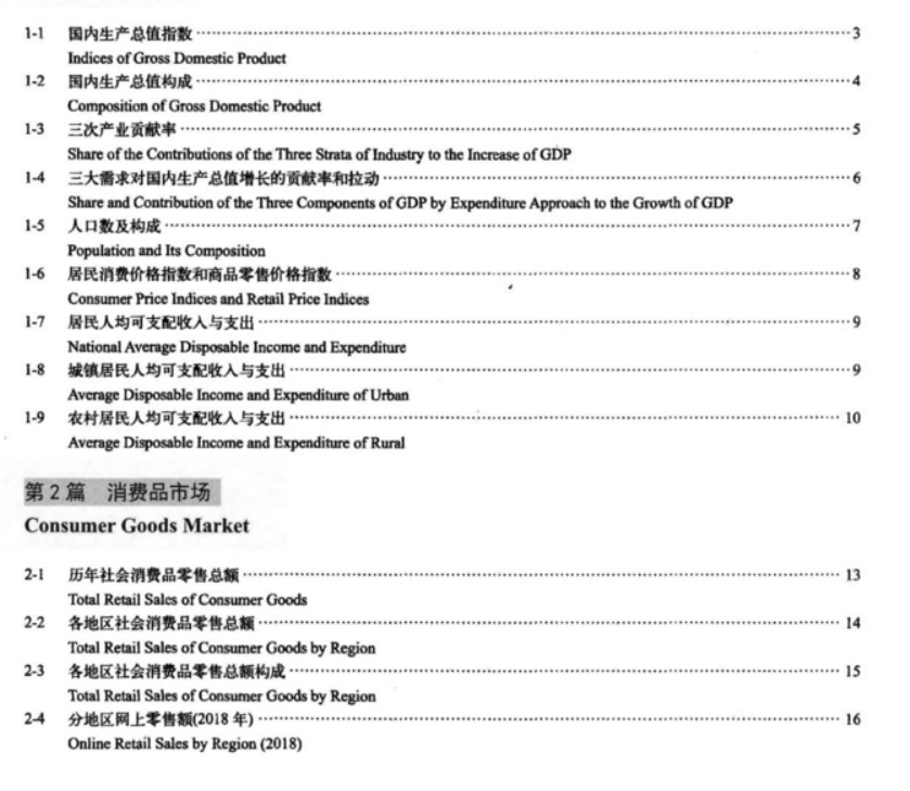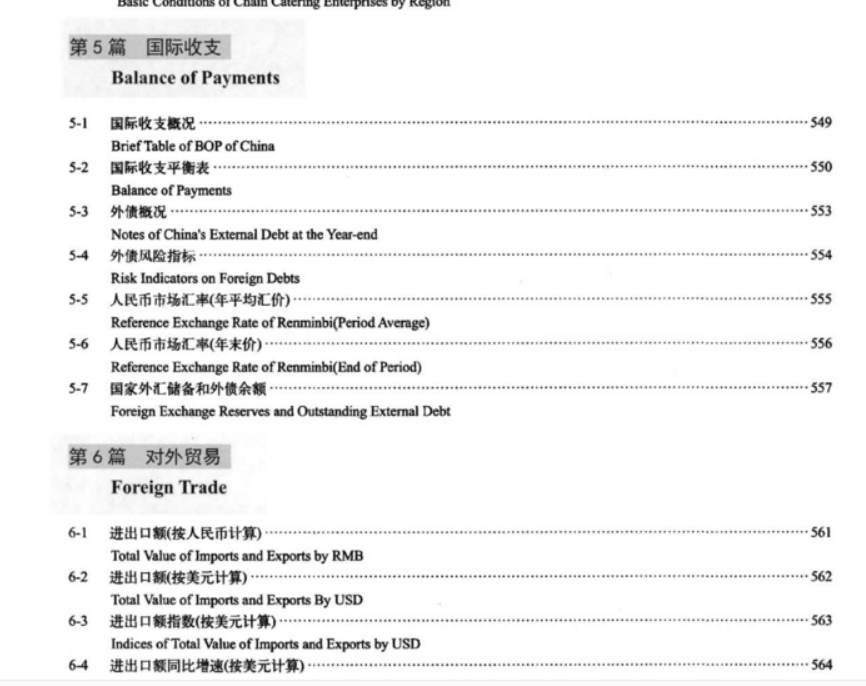 二、本年鉴正文内容分为9个部分:1.综合篇;2.消费品市场篇;3.批发和零售业篇;4.住宿和餐饮业篇;5.国际收支篇;6.对外贸易篇;7.利用外资篇;8.对外投资与经济合作篇;9.旅游篇。为便于读者使用,本年鉴对所用略语和主要统计指标的含义、统计范围和统计方法作了简要说明。