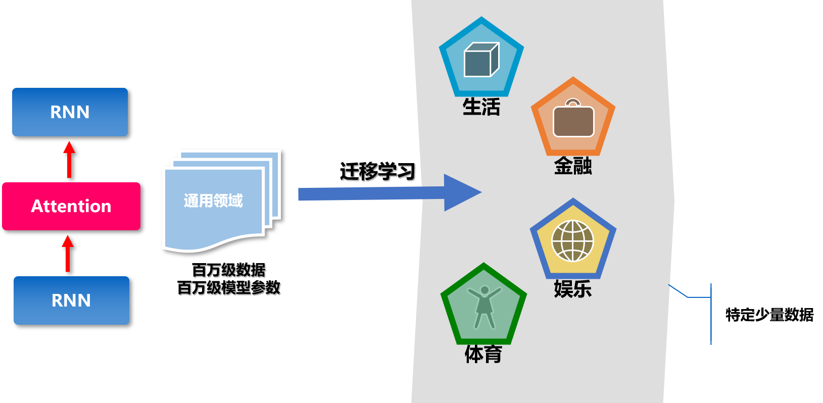 先训练一个通用型的对话系统,然后再根据特定领域的小数据修正它,使得这个对话系统适应该特定领域的任务。比如,一个银行客户需要办理信用卡,他并不想回答所有繁琐的问题,例如信用卡种类,信用卡申请额度,信用卡还款方式、信用卡账单接收方式等。