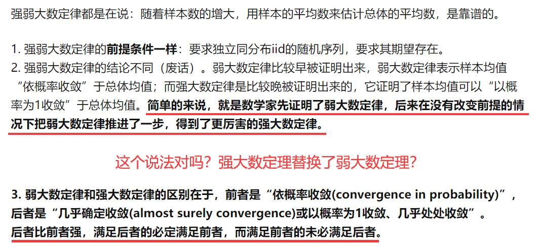 强大数定律和弱大数定律的本质区别,下边截图中的说法对吗?二者的各种用途是?