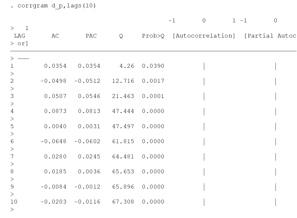 之前我是通过陈强教授的高级计量学与stata应用来学习这块内容的,用陈强教授给的数据自相关图和偏自相关图都很漂亮。现在我对一个数据进行分析,画出来的自相关和偏自相关图为什么95%的置信区间这么奇怪,方方正正,并且有多个显著不为0的自相关系数和偏自相关系数,不知道如何选择ARMA的滞后阶数了,恳请大家指点一二!