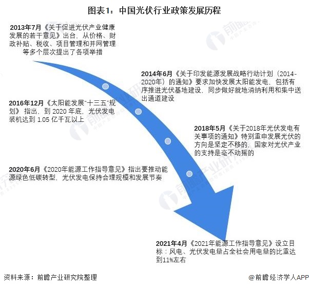 2021年是我国开启碳达峰、碳中和计划的元年,国家及各省市对于光伏行业的装机规划、能源消纳、用电补贴等均出台了大量政策。