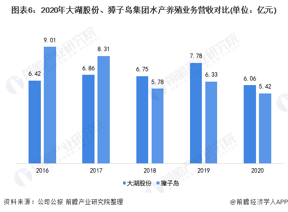 在大湖股份方面,2016-2019年大湖股份的水产养殖业务营业收入呈现波动上升趋势,从2016年的6.42亿元上升至2019年的7.78亿元。2020年,由于新冠肺炎疫情的影响,大湖股份的水产养殖业务营业收入为6.06亿元,同比下跌22.15%。整体来看,大湖股份的水产养殖业务营收略胜一筹。