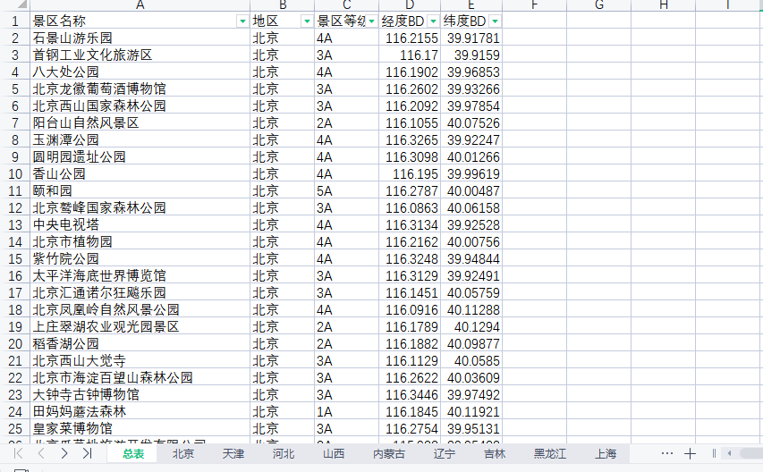 2.A级景区分省WGS84