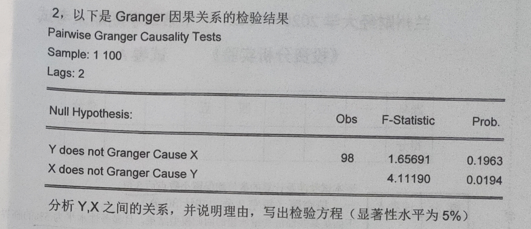 【计量经济】根据Granger因果关系检验结果,写出检验方程