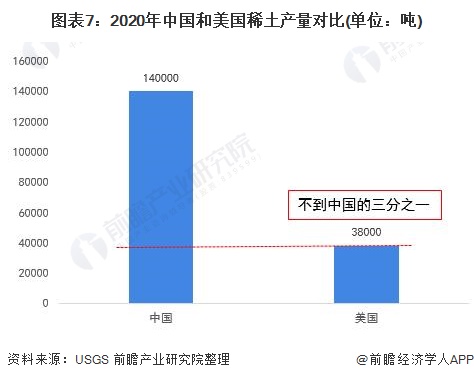 而中国,是全球稀土最大的卖家,也是全球最为重要的卖家。我国是全球唯一能够提供全部17种稀土金属的国家。根据USGS数据显示,2020年我国稀土产量为14万吨,占全球稀土总产量的一半以上;而美国稀土生产量仅为3.8万吨,不到中国的三分之一。