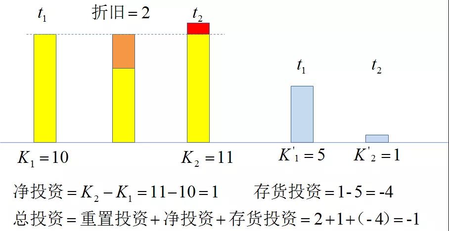 第一种情况:假设存货投资=0,那么总投资=固定资产投资+0=重置投资+净投资,其中,重置投资=折旧,净投资是两个时点上资本存量之差。那么,会出现如下几种情况。