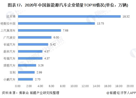 2020年,在我国新能源汽车企业销量TOP10中,我国本土汽车制造企业比亚迪,实现18.32万辆的销量,成为我国新能源汽车销量最多的企业,而随着比亚迪刀片电池技术的不断发展,目前比亚迪在新能源汽车领域的龙头地位开始显现。