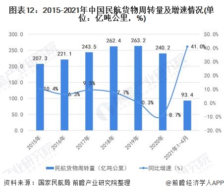 2021年1-4月呈现恢复性增长,民航货邮、旅客吞吐量分别同比增长41.0%、43.2%。整体来看,随着国民经济的不断增长,将带动我国民航运输市场发展持续向好。