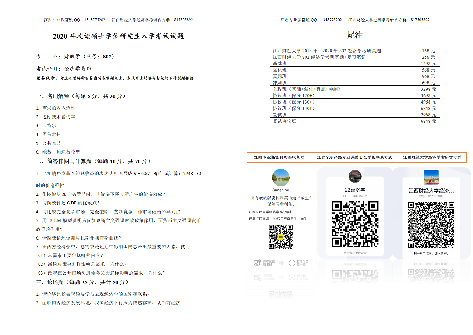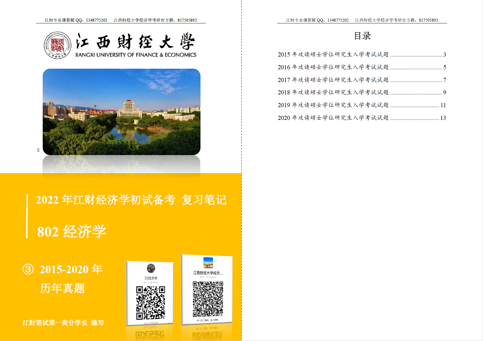 最新·2011-2020年江西财经大学806经济学历年考研真题+初试备考(微观宏观)复习笔记
