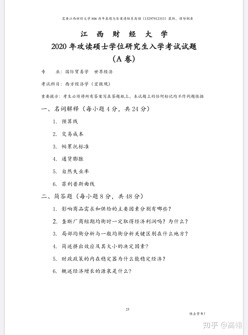 江西财经大学806经济学初试备考(微观)复习笔记