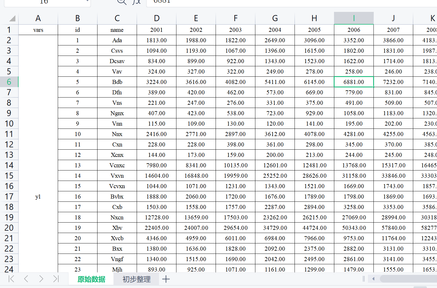 以下是具体数据,包含y1-y9&2001-2019年的数据: