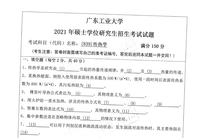839 传热学(广东工业大学2021年硕士学位研究生招生考试试题).rar