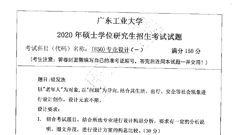 850 专业设计【一】(广东工业大学2020年硕士学位研究生招生考试试题).rar