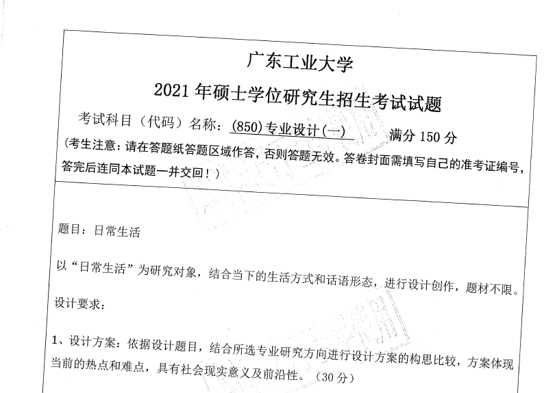 850 专业设计【一】(广东工业大学2021年硕士学位研究生招生考试试题).rar