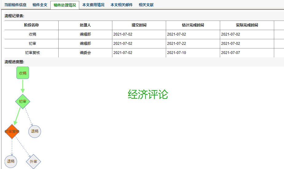 wueny1205 发表于 2021-7-11 20:53 《经济评论》初审复核不太懂,是要退稿的节奏吗? 投稿时间:6月30日