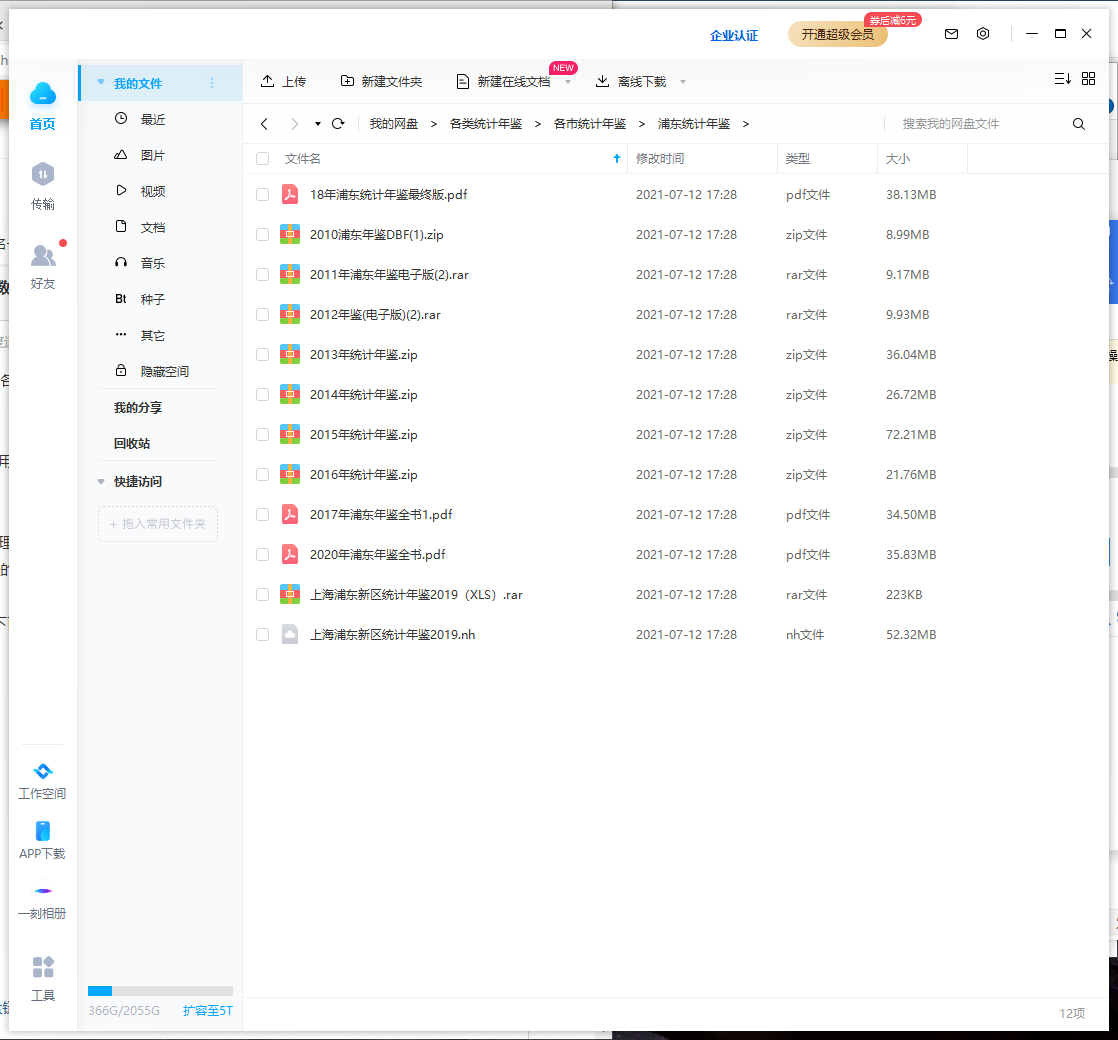 浦东统计年鉴2020-2010百度网盘链接.docx