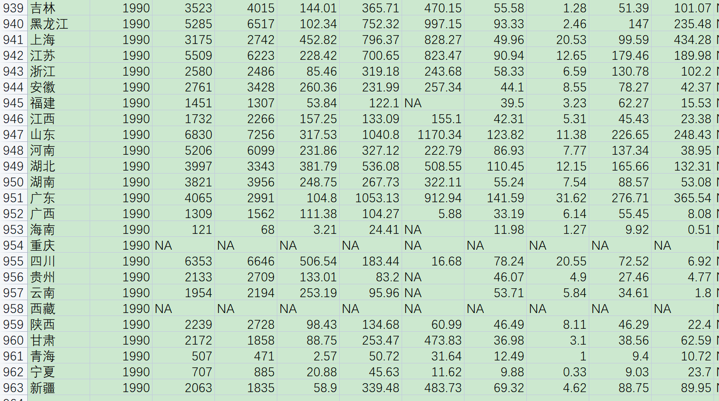 能源消费量(分省)1990-2019 面板数据1.来源:中国能源统计年鉴(部分数据有缺失)