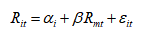 (3)计算个股的正常收益与异常收益(Normal and Abnormal Returns),为准确评价某一时间对公司股价的影响,要计算在不发生该事件的假设条件下公司股价的正常收益,再与实际的收益率作差得到由于该事件发生对公司股价所带来的异常影响,即为异常收益率,要计算这两个指标,可以先将事件窗划分为两部分,前一部分为训练集,后一部分为测试集,取相应事件窗内大盘指数的收益率为自变量,个股的收益率为因变量,运用计量方法,如最小二乘法,在训练集中建立拟合模型,带入到测试集中,即可得到个股的正常收益率,