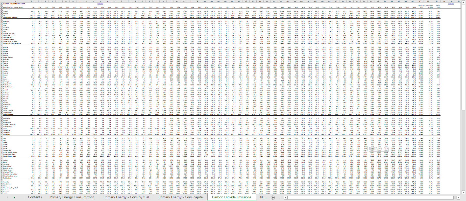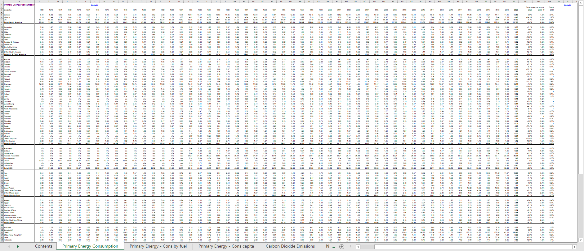 BP世界能源统计年鉴2021含excel数据:全球世界各国地区石油天然气电力等生产消费英文版