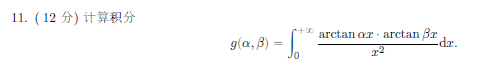 $\displaystyle g'_\alpha (\alpha ,\beta )=\int_{0}^{+\infty }\frac{x}{1+\alpha ^2x^2}\cdot \frac{ \arctan \beta x}{x^2}dx,$
