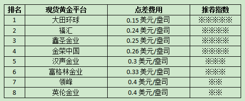 既然了解了点差在黄金交易平台排名中的重要性,那么目前主流平台中哪家店差成本较低呢?小编根据目前各大黄金平台提供的服务,给大家整理了如下表格:
