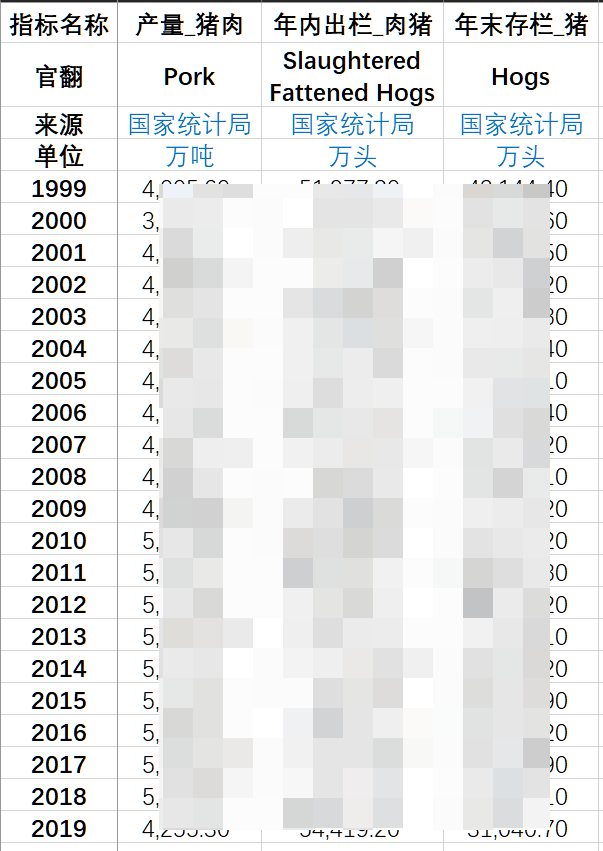 全国畜产品产量、出栏量、存栏量:猪(1999-2019).xlsx
