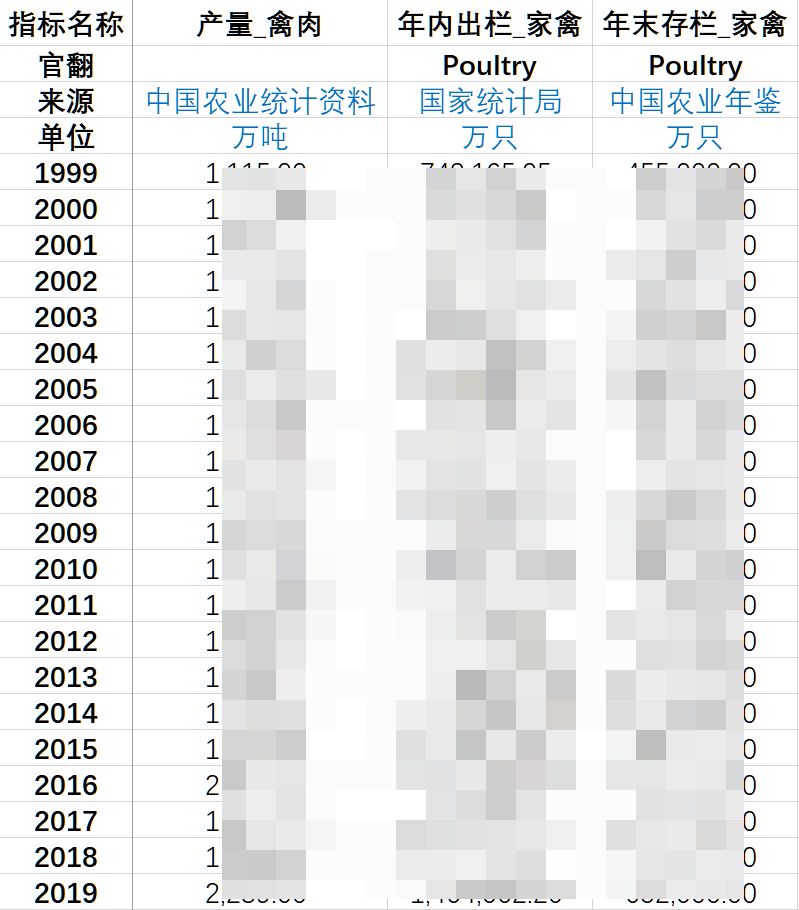 从《中国畜牧兽医年鉴》《中国农业年鉴》《中国农业统计资料》《中国统计年鉴》《中国农村统计年鉴》中将全国四个主要畜产品(猪、牛、羊、禽肉)的年产量、年内出栏数、年末存栏数整理出来,EXCEL版本,无任何Bug,童叟无欺!比论坛中的另一家靠谱多了,可以先看截图再下载。眼睛都看瞎了,手都录短了,挣点辛苦钱。