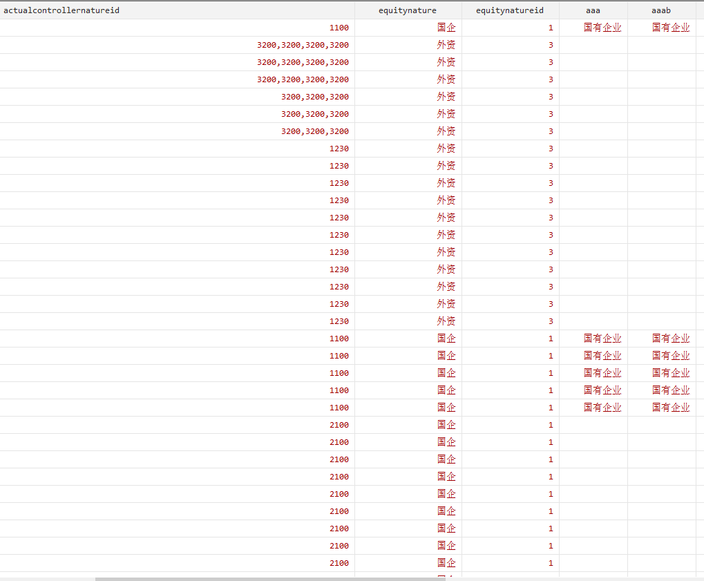 replace actualcontrollernatureidzw="外国企业" if actualcontrollernatureid=="1230"