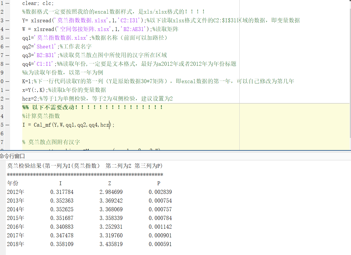 CHen0213 发表于 2021-7-25 21:16 全新版莫兰指数与散点图matlab代码 只要按我给的数据模板准备好数据 1.自动出结果