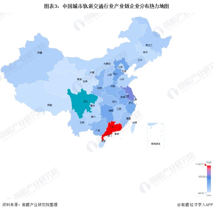 目前,我国城市轨道交通企业主要集中在广东、江苏、四川、河北湖南、浙江、安徽等地,其中广东拥有的城市轨道交通企业较多。
