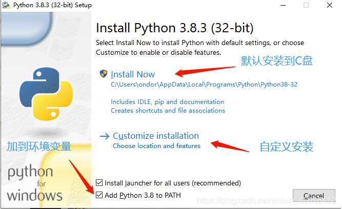 网络上说,Python3.8,既可以选自定义安装,也可以选择默认安装。其实还是选择默认安装,如果选择自定义安装,nltk可能装不了!