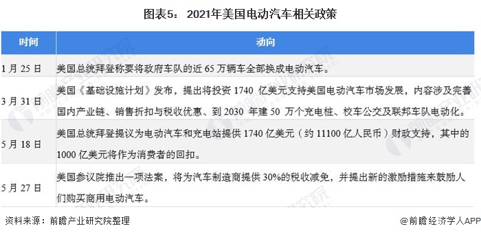 2021年以来,美国电动汽车销量的强势增长得益于美国近期出台的电动汽车支持政策。如3月31日,美国《基础设施计划》发布,提出将投资1740 亿美元支持美国电动汽车市场发展,内容涉及完善国内产业链、销售折扣与税收优惠、到2030 年建50 万个充电桩、校车公交及联邦车队电动化。