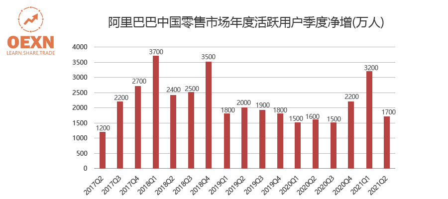 在活跃用户方面,阿里巴巴活跃用户消费者达到了11.8亿,较上一季度增加了4500万,零售市场活跃消费者达8.28亿,单季增长1700万。