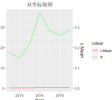 这是ggplot2做的吧,这是两个变量吗,最好把代码发上来,sec.axis参数的用法可能错了,这个参数本身需要对相应的数据进行调整。