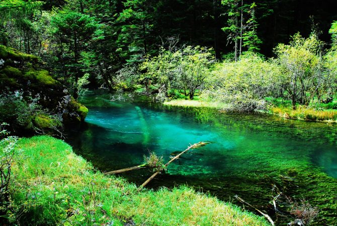 第二天,九点进沟,先到王元塔家放下行李,就直奔日则沟的原始森林,从上往下玩,一直到下午3点半左右,才从诺日朗转车到长海,那时的长海没什么游人了,很安静,女儿非常喜欢。我们坐最后一班4点半的车离开长海,5点左右到了树正寨,住下。