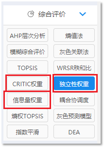 CRITIC权重、独立性权重、信息量权重分别是三种计算权重的方法,其中独立性权重是利用指标之间的共线性强弱来确定权重。