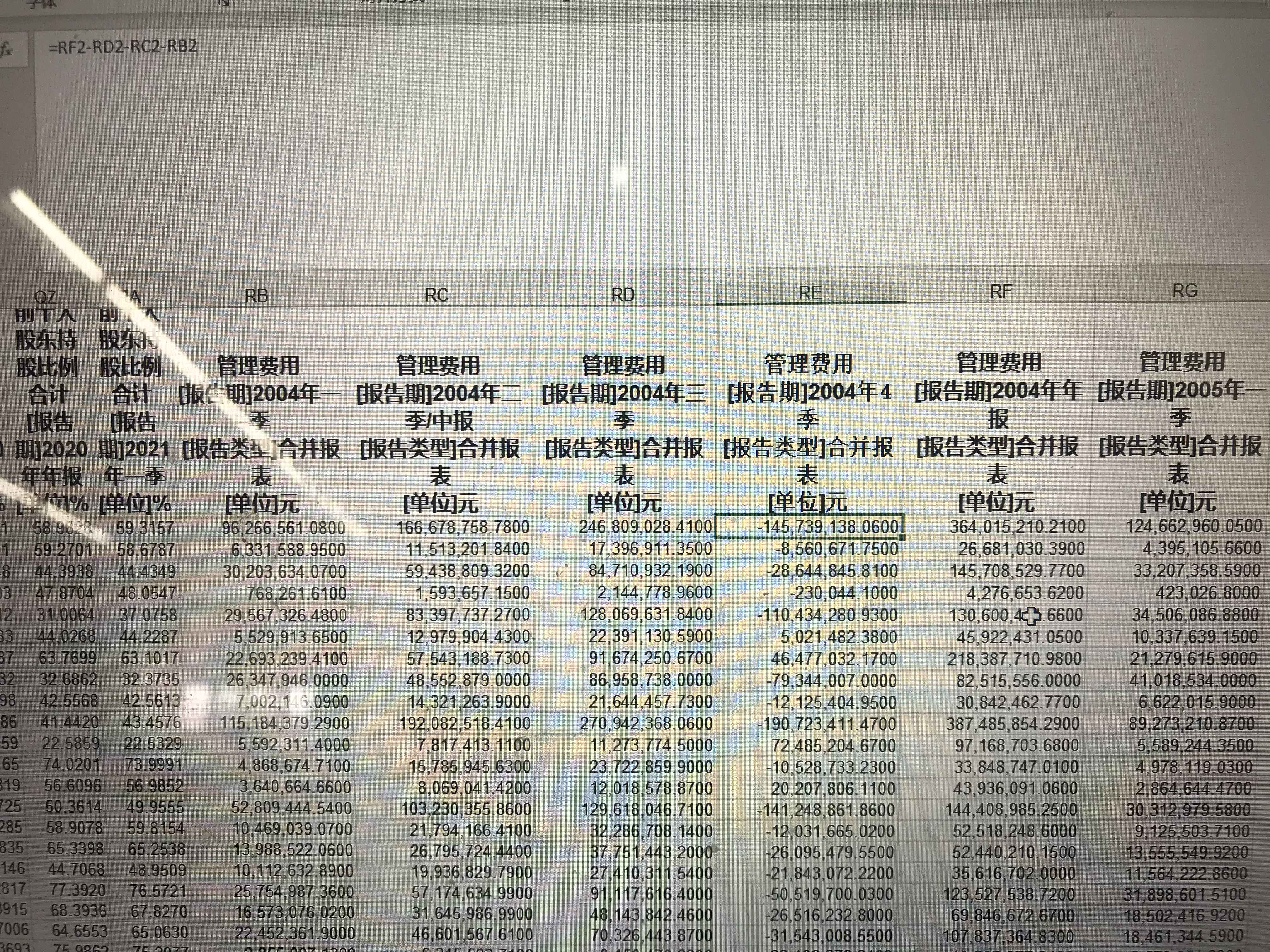 我有一个疑问,我从choice平台导出来的数据,分别为1-3季度数据以及公司年报数据,如果利用公司季度数据进行分析,那就要求出第四季度数据,但是从图中可以看出这“管理费用”这一项明显在第四季度不应该为负,我百度为负的原因解释到“冲回已计入管理费用的金额”,但是我看前面三季度数据全都是正的,但是第四季度自己计算出来负的这么多有点慌,这样情况正常么?请大佬指示一下,谢谢~