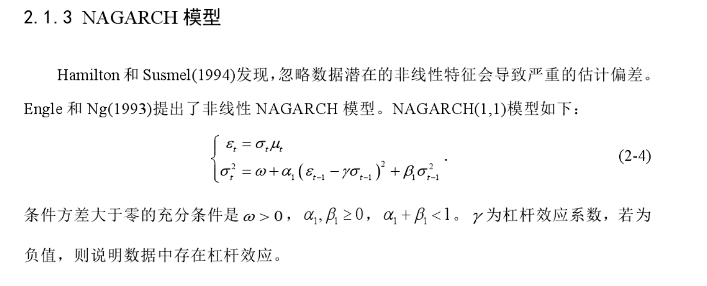 我在网上没有找到关于NAGARCH模型的操作实例,只找到了相关论文对它的解释,但还是不懂如何建模使用,希望大家能帮忙解答一下,谢谢大家!