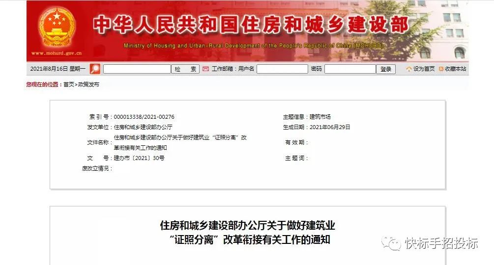 早在6月29日,住房和城乡建设部办公厅在发布的《住房和城乡建设部办公厅关于做好建筑业“证照分离”改革衔接有关工作的通知》中就明确,自2021年7月1日起,建筑业企业施工劳务资质由审批制改为备案制,由企业注册地设区市住房和城乡建设主管部门负责办理备案手续。
