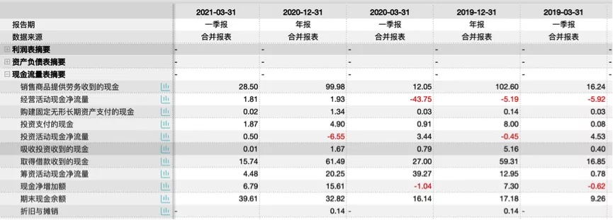 整个一季度实现经营性现金流1.81亿元,同比增长104%,全年现金净增加额为6.79亿元,同比增长753%。